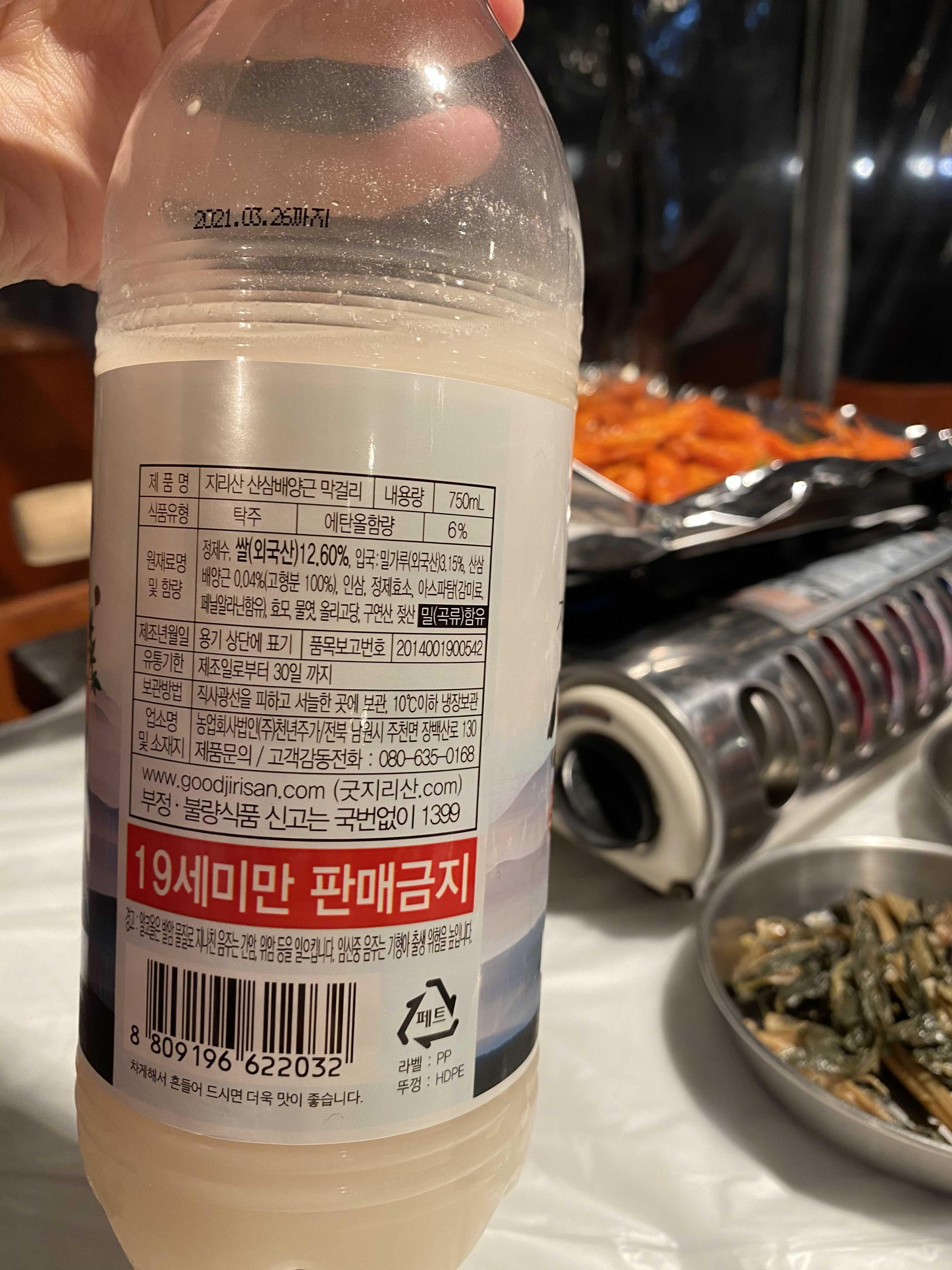 - 주류명 : 지리산 산삼 생막걸리